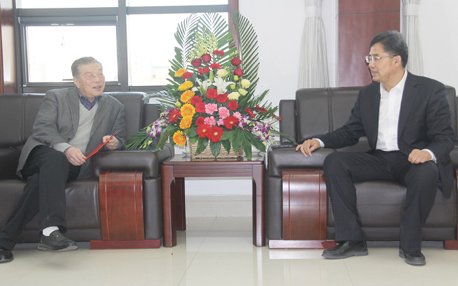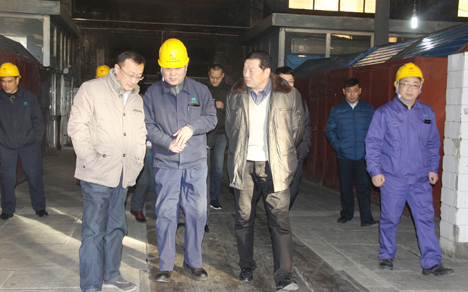 1月29日,沂源縣縣委書(shū)記王義樸(右前二)一行十余人來(lái)我公司看望省級(jí)勞動(dòng)模范、董事長(zhǎng)柴文...